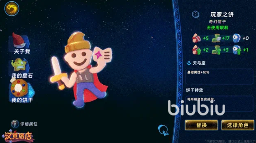 新奇幻饼干为“玩家”,大家使用任何角色装备“玩家”饼干后,该角色都会发生改变,此时可以免疫所有的伤害,但玩家周围每间隔一段时间就会生成怪物,当怪物数量超过一定数量且超出规定时间后,会导致角色死亡,它的武器会根据装备来决定饼干角色的主属性,力量默认为慢速攻击的物理伤,敏捷是多段攻击的物理伤,智慧是法术aoe,他的法术需要打开秘籍输入框输入,可以释放出魔影龙吐息。