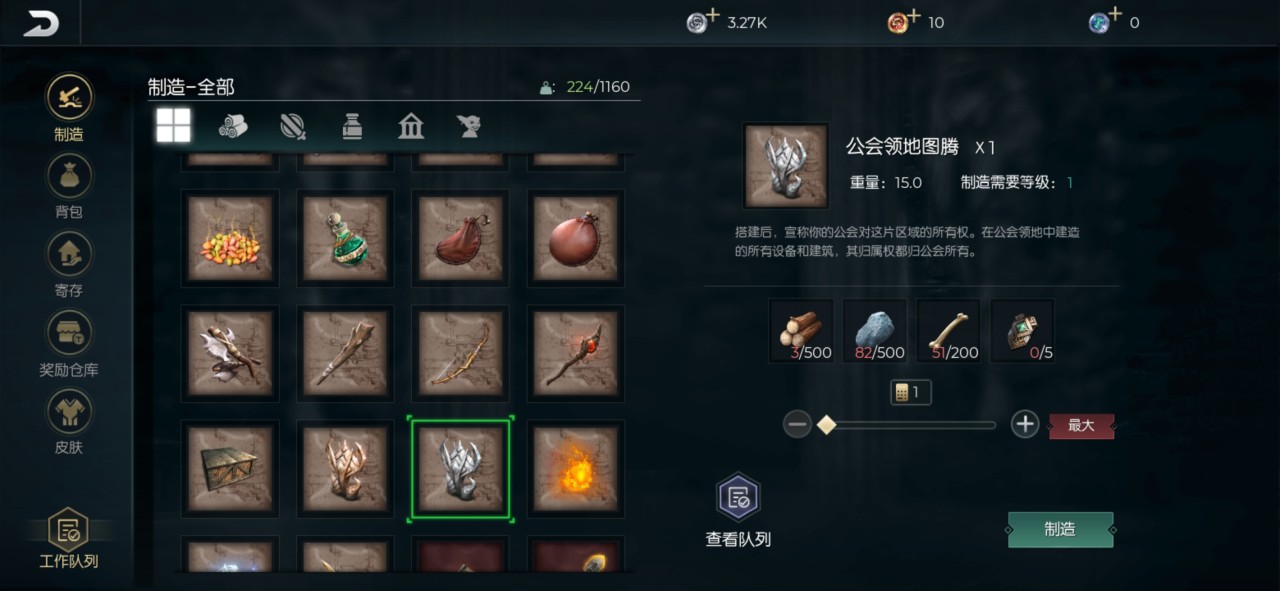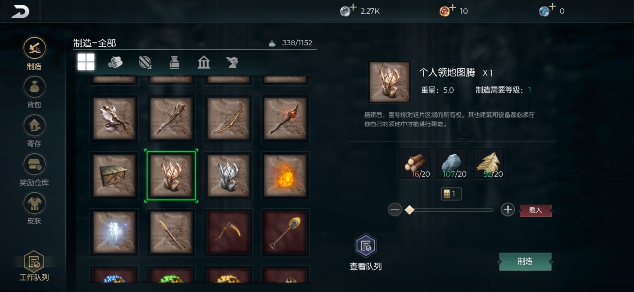 当玩家们解锁领地图腾学识的时候,想要建设领地图腾还必须满足一个前提条件,那就是学习简易营地学识。然后玩家们可以通过及其一定数量的木头,石头以及原始软皮这三个资源来花费30秒的时间制作一个领地图腾。