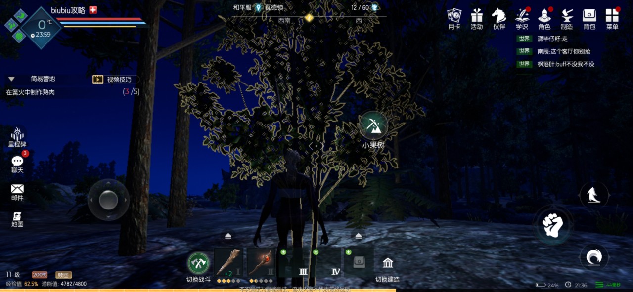 在游戏的地图中一般会给大家随机分布几个小果树和大果树,小果树产出种子的概率比较小,大果树大家就可以选择砍伐,需要耗费原始伐木斧的10%的耐久度,有30%的概率获得种子。