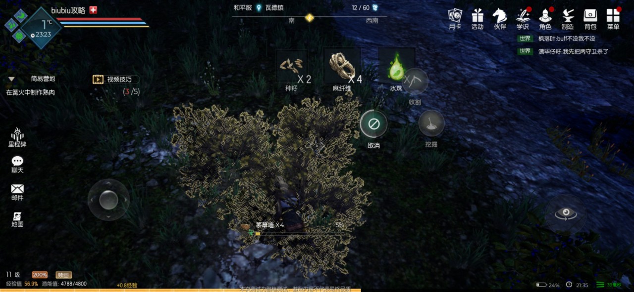 在游戏里面,玩家们只要看到地面上有干草堆,然后就可以通过拾取这个选项,注意千万不是收割和挖掘,只有拾取才会有一定的概率来获得种子,随之而带的产品有麻纤维和水珠。