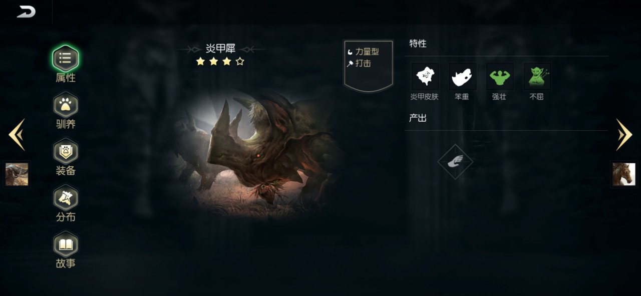 这是一个定位肉盾的宠物,游戏内的高等级比较少见,如果有了战马以及战象这两个宠物的玩家们不需要费抓,相对来说捕捉比较简单,困兽房外加上四级的叉子就可以成功捕捉。