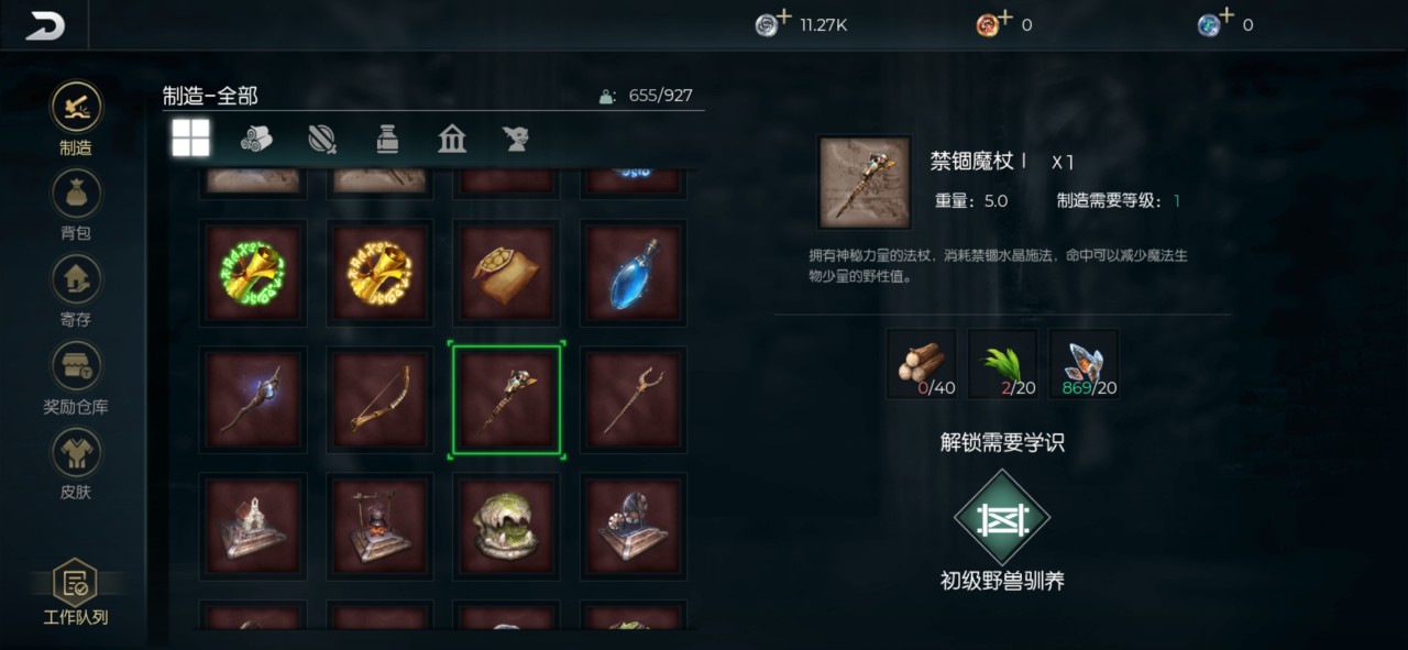 想要获得禁锢法杖必须要学习初级野兽驯养学识,而且必须得达到三级,制作配方配比为40个木头,20个嫩叶以及20个魔能石,禁锢法杖主要针对的是一些元素类的生物,比如说游戏内比较强势的风元素、水元素和火元素,虽然造不成很高的伤害,但是在驯服宠物方面非常有效。
