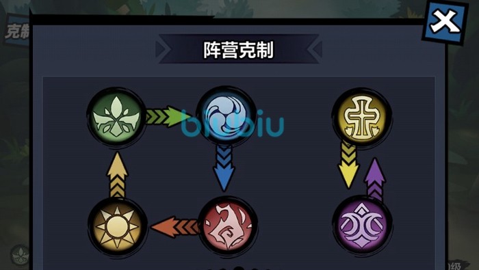 大家在战斗准备界面的左上方可以查看详细的克制信息。游戏中六个阵营有四个是一一对应相克的,而另外两个是互相克制,所以大家在排列角色的站位时一定要先看敌方阵容的阵营,然后尽量选择相克的阵营进行对阵。