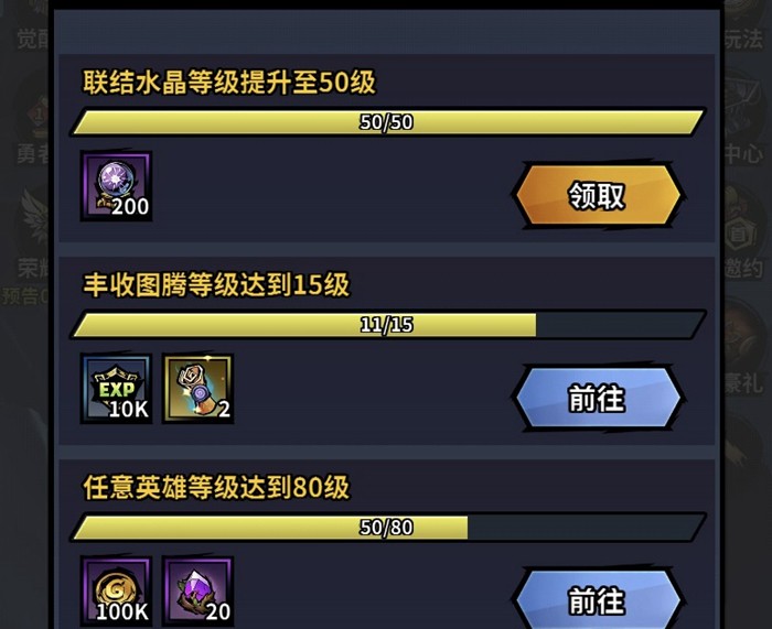 也就是说,想要完成联结勇士达到50级这个任务,玩家至少有拥有六个等级达到50级的非二星英雄。因为游戏中的二星英雄是不计算在联结水晶玩法之中的,所以大家手上的五星英雄或者是四星英雄,一定要有六个英雄都培养强化到了50级,这样就可以完成任务了。