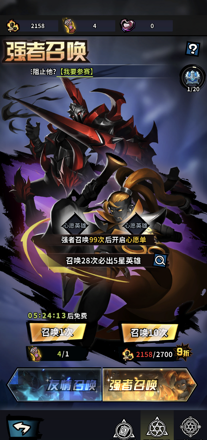 如果玩家连续29次没有获得到五星英雄,那么在第30次的时候系统必将为玩家送上一个五星英雄,可以说这一点也是比较有人性化的。这个英雄召唤卷玩家可以通过做任务获取,也可在成长之路进行兑换。至于另外一个使用友情点进行召唤,这个友情点玩家可以通过与好友每日互赠获取。