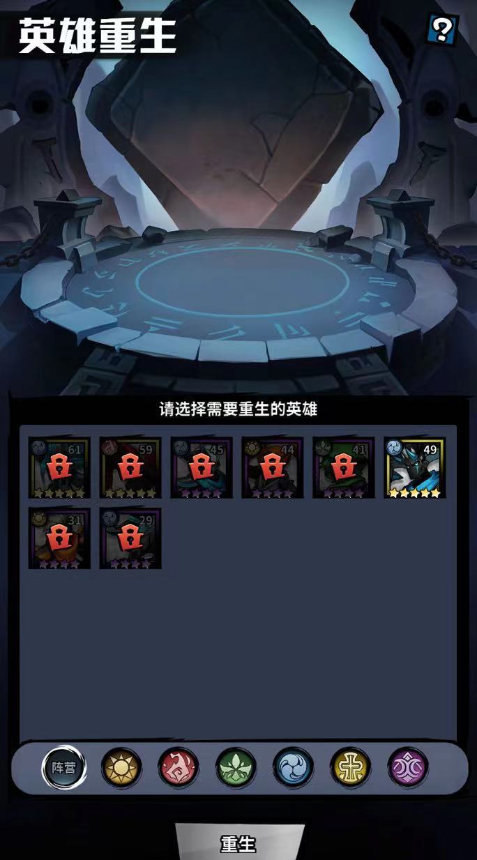 玩家在游戏初期对于游戏的玩法还是有很多不明白的地方,这个时候培养英雄也会出现差错,例如消耗了很多的培养材料到最后却发现培养的英雄并不实用,这个时候就需要对其进行一个重置处理了,重置英雄可以改变英雄等级以及转升等级,对于品阶来说并不会有任何影响,而且最主要的是,英雄在进行重生之后,此前消耗的所有升级材料,转生材料,觉醒材料,装备以及魂石都是可以归还的。