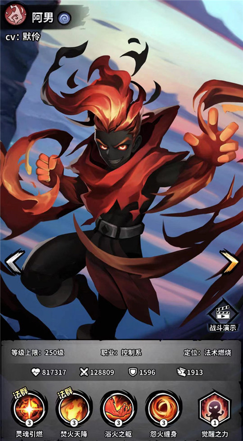 这是一个输出流阵容,可能有的玩家会说这比较适合新手,但其实后期大部分玩家注重的都是阵容的输出,而这个阵容到了后期输出非常爆炸,三个主力输出的技能都带有引燃状态, 并且阿男的被动带有提升引燃造成的输出,最后通过蕾温的主动引爆引燃效果,这样通过不断的叠加引燃,持续输出能力非常高。
