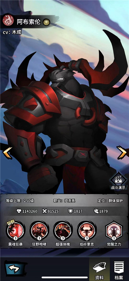 阿布索具有群体保护的特点,对于一个前排来说攻击并不是最重要的,他必须能够保护其后排的队友,并增加后排的输出空间。阿布索伦的震魂狂袭攻击对方全体造成的伤害可以部分转化为我方队友的护盾,大大保护了我方的队友;焰岭意志可以降低敌方全体的防御力,大大增加我方的输出,这样的前排坦克必须推荐。