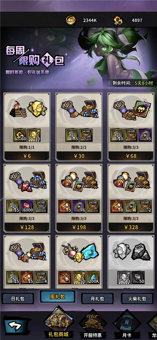 以上可以看出死神还是非常难获得的,如果你是氪金大佬有能力直接充8w将龙纹徽记升到15级拿神魔礼包选死神,如果是平民玩家只能通过高级聆愿抽卡了,大家要注意的是前期如果有金色委托书最好留到高级聆愿解锁之后在用,不然不会有高级聆愿卡奖励。另外前期的周礼包月礼包都不要买,省钱到高级聆愿开启之后再买才会获得高级聆愿卡。