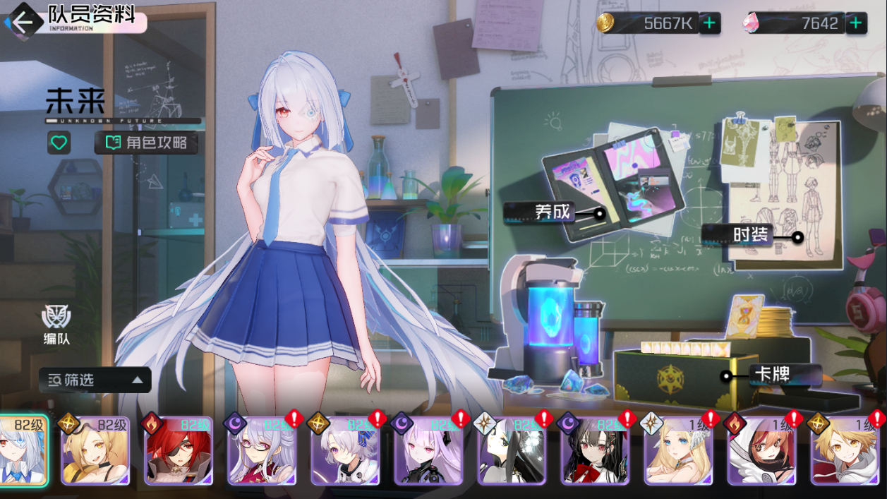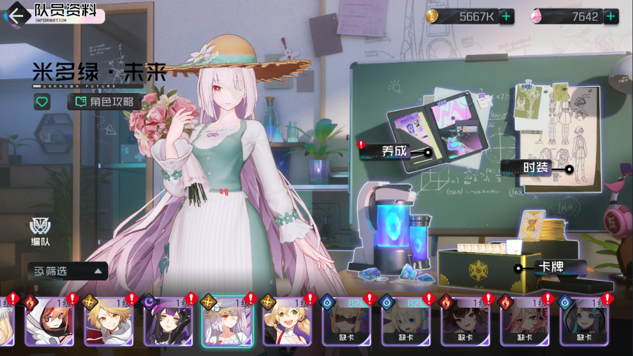 (1)输出角色:输出角色推荐使用米多绿未来,选带卡牌推荐使用海潮两个、异能攻击一个、星能绽放一个。