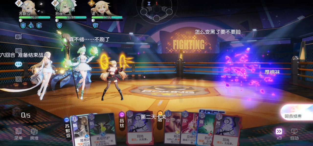 (6)之后就是重复着刚才的流程反复循环,这个BOSS血量非常的多,大家需要有一些耐心,并且最好不要贪输出,要在该输出的位置才四处。至于卡牌,要求真的不是很高,大家已经打到了这个阶段,相信已经不用不用再赘述如何组合了。