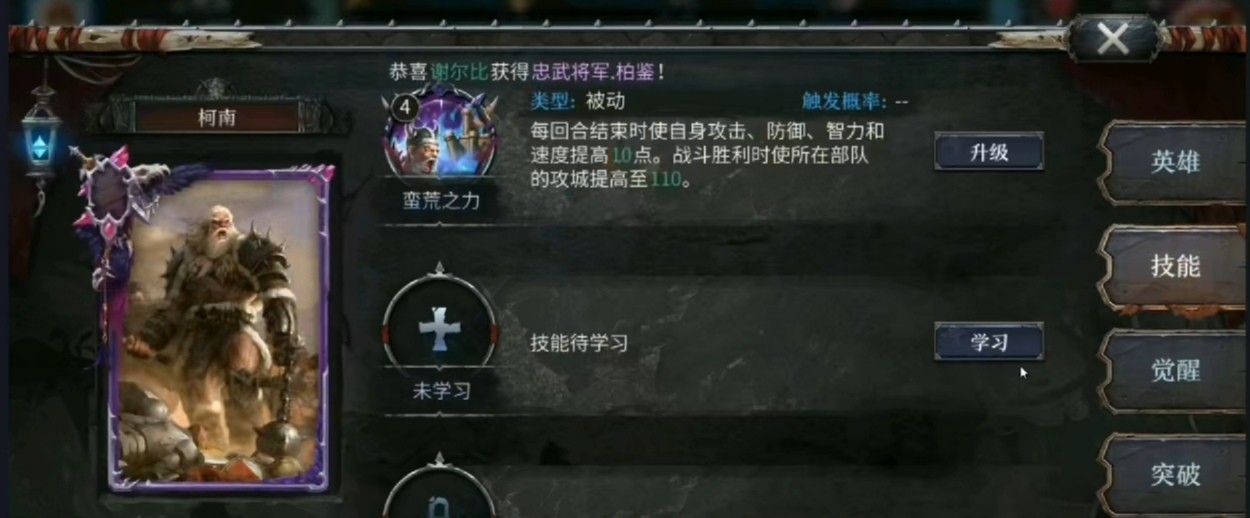 首先是普通技能的推荐,攻城之光,原力围城甘露和聚力,这几个技能分别可以用来提升攻城值,提升防御,提升回复能力,减少战损,虽然不看起来不像其他的技能那么酷炫,但确确实实能够在战斗过程中给玩家更多的保护,潜移默化的提升玩家的战斗水平和战斗能力是这个游戏中最不可缺少的几个技能。