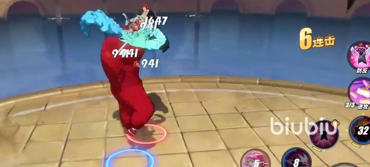 他的“空中追击”会浮在空中向前突进,若命中敌人则会进行多段追击,释放后会生成追加技,分裂自己的手、脚在周围旋转攻击,期间自身会处于无敌状态,点击手部、脚部可以在切换到其他部位的时候发动攻击。