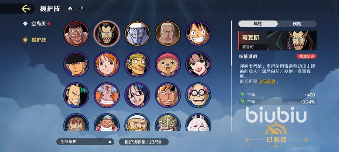 5、空岛贝&援护技:机解锁后可以在PVP和PVE中使用。