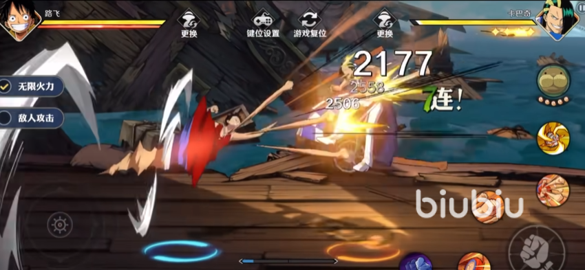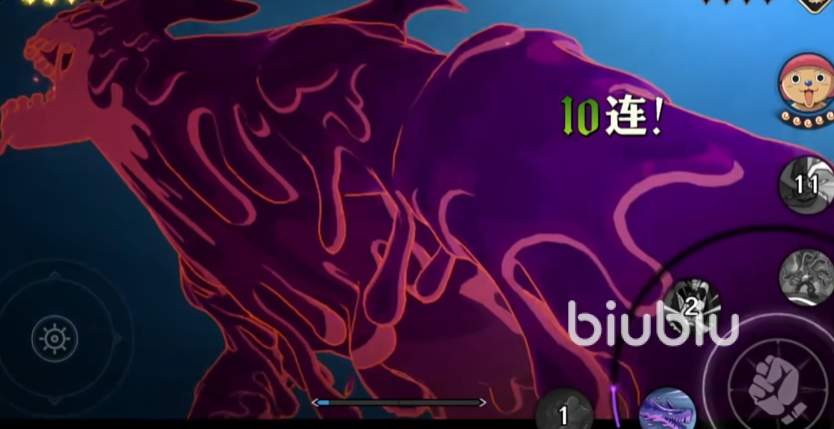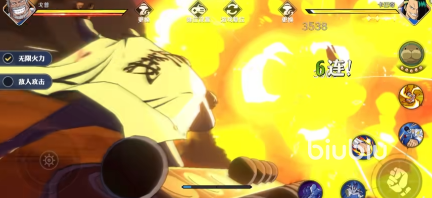 这时候的路飞还是刚出新手村的路飞,大招是先用橡皮膨胀成气球,随后扭转社区开始不停地旋转,使用机关枪连续打击敌人,会有一个近距离脸部特写,和他的很多其他招式那样非常喜感。
