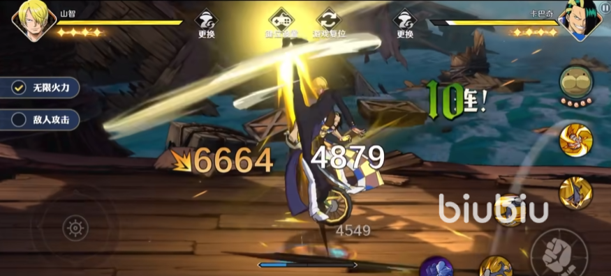 奥义“踢击套餐·串烧”,蓄力后的连续踢技,短暂蓄力向着斜前方踢击命中后会开启奥义动画,对这敌人从不同方向连续踢,最后高高跃起,朝着下方猛烈地踩踏冲刺攻击。
