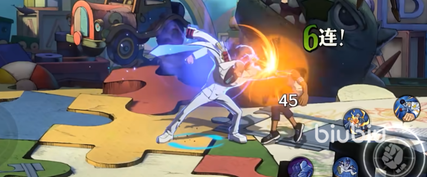 它的战斗是围绕着被动、小技能、奥义、空岛贝、援护技展开的,颇有一种在街机厅玩格斗游戏的感觉,当然这里不需要搓招,而是点按、滑动屏幕上的按钮,了解每个伙伴的机制,来施展华丽的连招。