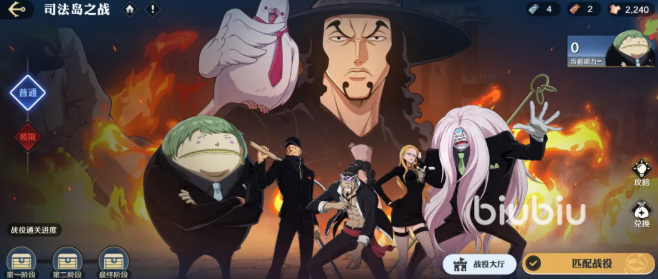 新伙伴,本次更新将推出前代空岛首领“甘·福尔”、空岛四神官、福克斯、杰布拉、以及司法岛“佐罗”,一共9个新伙伴。还会上线新的周常玩法“传奇战役·司法岛之战”。同步开启的还有“道力”系统,通过任务获取道力值来解锁更多的天赋加成。