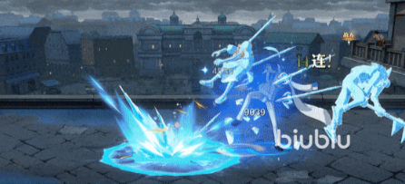 技能方面他的一技能也就是平a技能,这技能分为5段,这五段的攻击距离非常的远而且带有空中攻击,此外攻击第四段还带有冻结这种强控制的效果,命中后可以直接控制敌人稳定打出最后一段伤害。