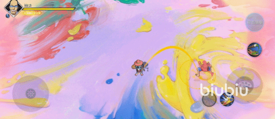 如果是红色颜料命中敌人会创造一个持续的标记,敌人的攻击只能朝向此标记,可以利用其躲避不少攻击,黄色颜料在命中后会使得敌人在原地狂笑,我们可以趁这个时间打出各种连招。