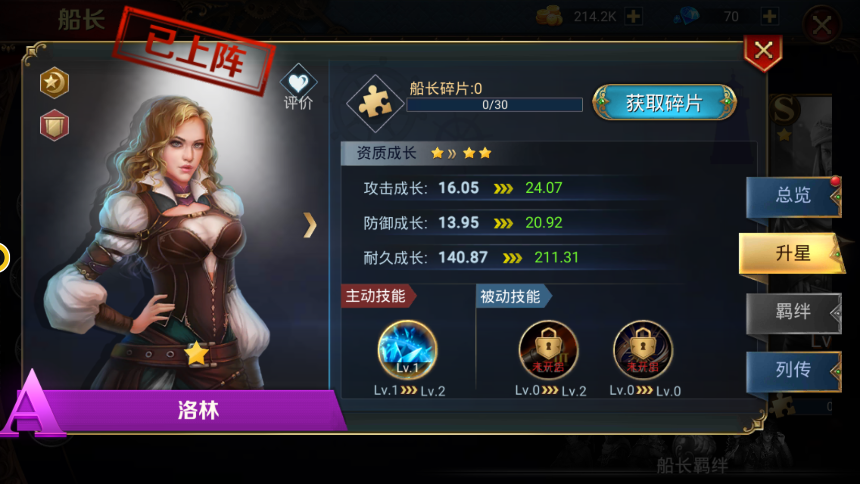 船长的星级提升了之后可以解锁更多的技能与属性。