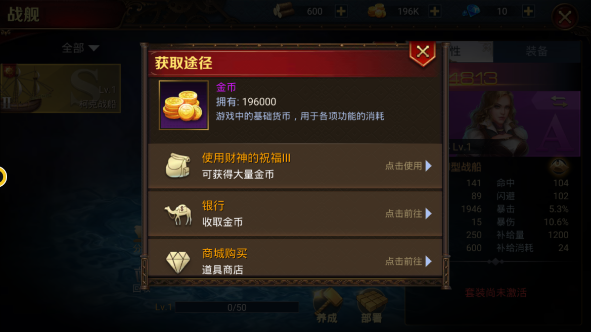 金币前期的主要获取途径还是任务,贸易,基本上在我们完成主线的同时也会给我们累积大量的金币。后期主要就是靠银行了,而且游戏中使用道具财神的祝福也是可以获得大量金币的。