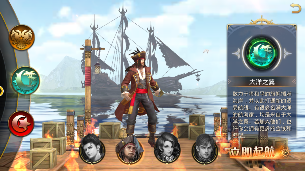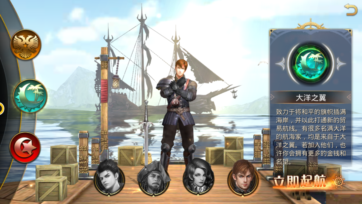 在游戏中目前一共是四个职业的,分别是大洋海军,海盗船长,海路商人,大洋骑士。这四个职各有特色,并且有自己独特的技能,下面我们分开看。