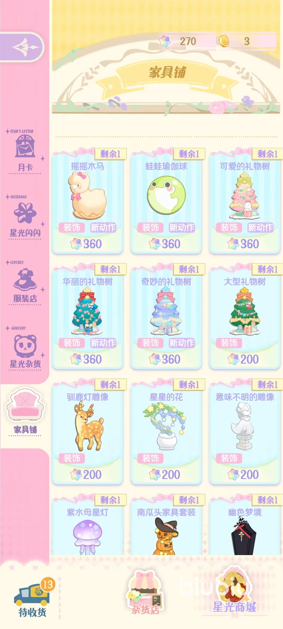 上面所说的是免费获取的方式,如果免费获取的不够使用,那么接下来就只能通过充值的方式来得到的。例如开启月卡之后可以立即获得150点星光,在后续每天都可以领取到。当然还有其他一些充值途径,大家根据自身的需求去选择。获取到了这些星光都可以打开星光商城,然后在这里购买各种各样的道具。在这里主要购买的当然是各种各样的漂亮时装,这些时装可以打扮各种角色,是大家孜孜不倦追求的内容。另外还可以在这里购买到很多食物与材料,在特殊时节还会出现限定食材,制作限定料理等。