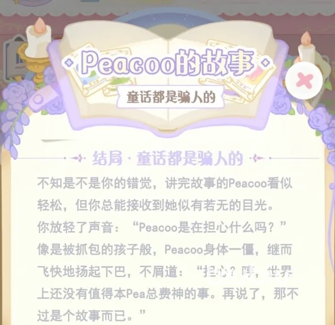 经过长时间的养成后玩家能解锁每个角色的结局,当然结局会有好和坏,这和玩家养成期间解锁的关于各个角色的故事章节内容有关。关于pea有2个章节的故事内容,一个是关于她热爱的演艺事业的,一个是关于和主理人“你”的结局。那么结局是好结局还是坏结局就看玩家们解锁了几个结局碎片,大于2个碎片以上才能解锁好的结局。