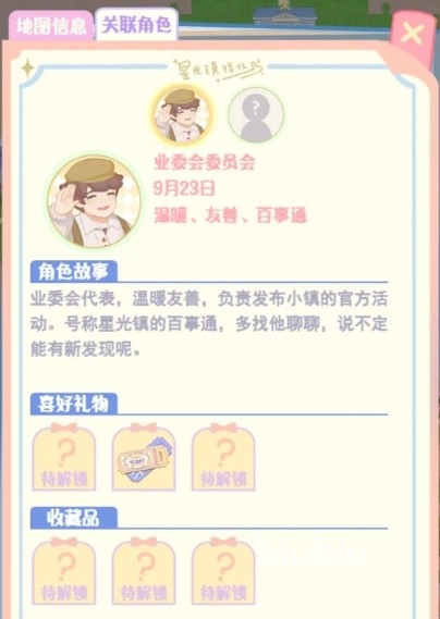 5、业委会代表:他作为业主委员会的代表,他知晓星光镇上的很多事情,他比较喜欢戏票票根、新书优惠券;