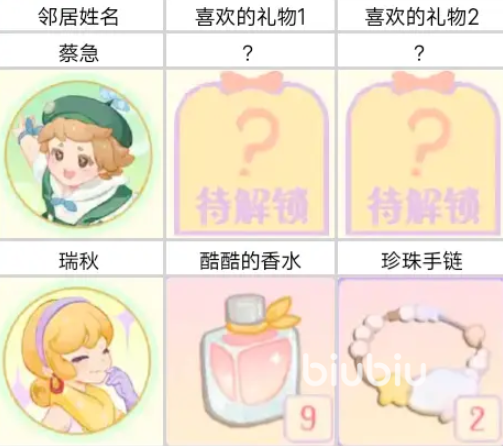 如果大家想要更蔡急搞好关系的话,那么就一定要赠送他所喜欢的礼物才行。他所喜欢的礼物就是酷酷的香水以及珍珠手链,这些物品都可以在做任务或者冒险的途中获取,另外也能在商店中购买赠与他,就可以与他一起收获满满的友谊啦!
