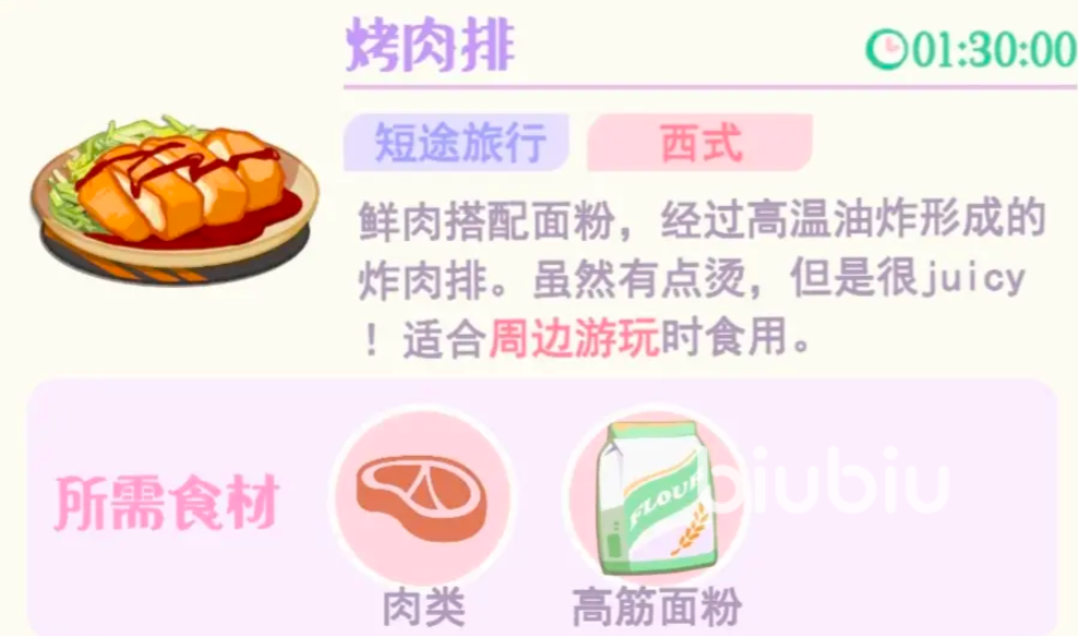另外制作一份蛋堡的时间大概在1分半钟左右,所以这段时间大家完全可以在其他的锅炉上面制作其他类型的美食,这样就能充分利用时间。当然除了蛋堡之外,还有其他可以用来代替短途旅行的食物,其中就包括烤肉排,只需要准备牛肉以及面粉就可以制作了,要是大家找不到制作蛋堡的材料,就可以用它代替一下。