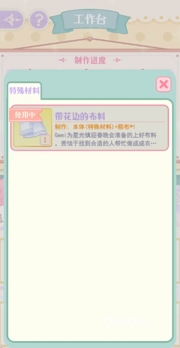 制作大部分的工具只需要使用到“普通材料”就可以了,只要少部分需要“特殊材料”才能制作,“特殊材料”同样要主动放在工作台上,若进入工作台时,普通材料显示“不足”,就说明有一部分正在制作的道具所需材料数量不够。