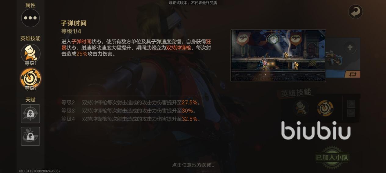 再者金发老哥马克,其技能是进入子弹时间,短时间内会变成双持冲锋枪,射速快伤害取决于面板的百分比,所以带一些高面板武器会非常强。天赋有一个是每多少次攻击会触发飞出去的拳击导弹,所以高射速武器都有很好的表现,比如加特林,机枪都可以。