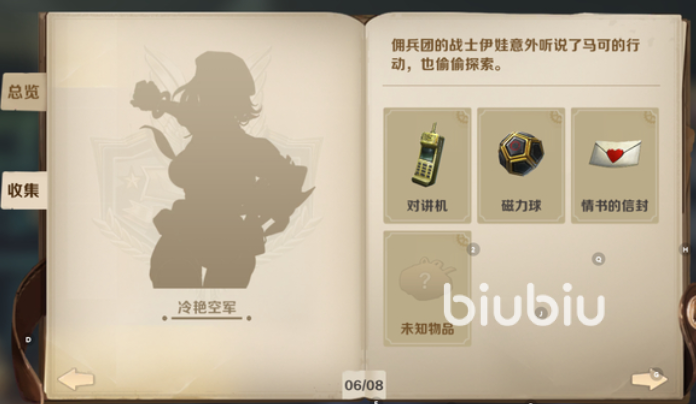 在本作中,玩家们可以直接在角色成就一览查看到目前玩家们可以领取的成就收集情况,无论是根据正规性的后勤补给,马可、菲奥等人进入相应的主线调查,获得的成就,又或者是佣兵战士的成就,都可以在这里看到自身的完成情况。
