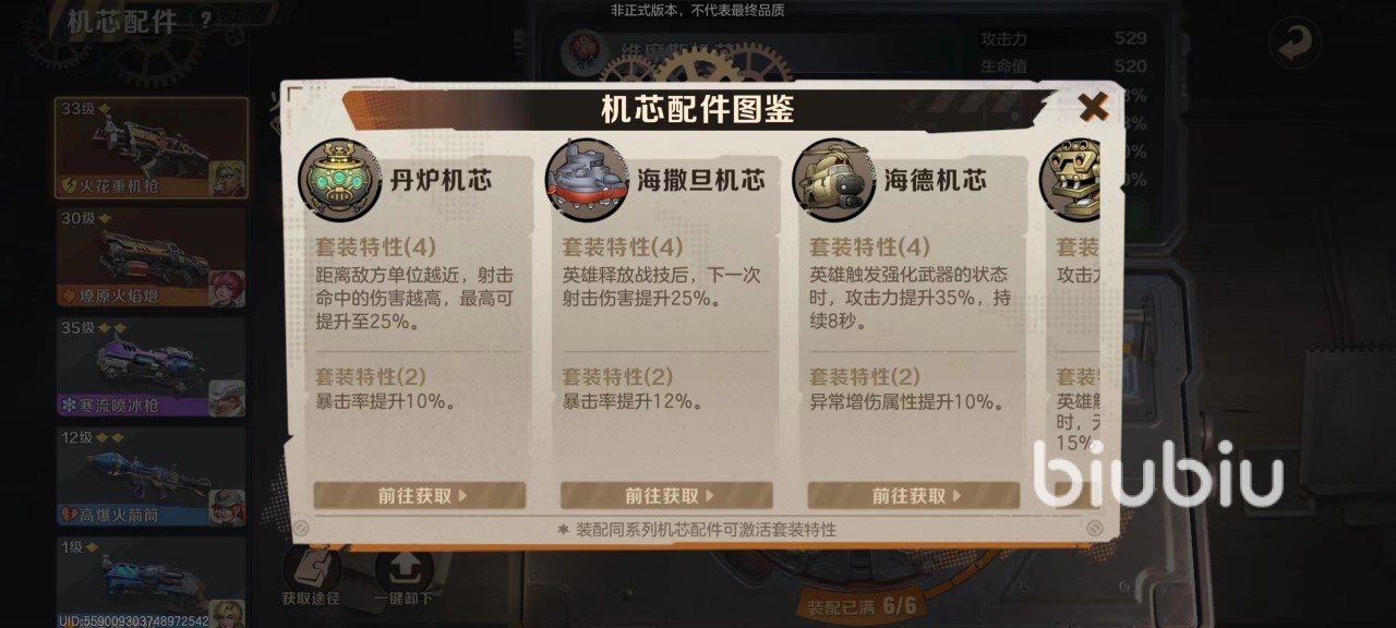 海德机芯两件套可以提升10%的异常增伤属性,四件套效果是当英雄触发强化武器的状态时,攻击力提升35%,这个效果会持续8秒。