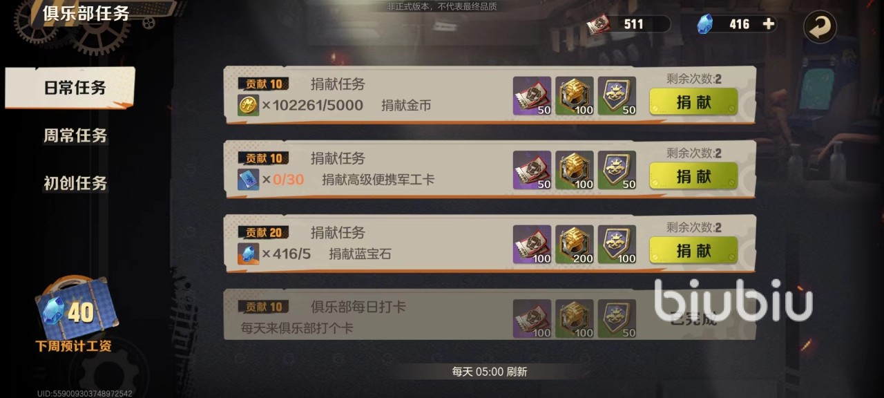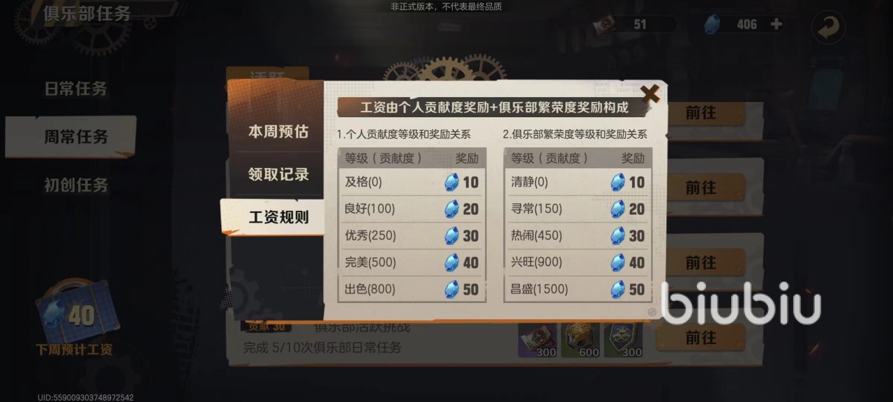 如果我们可以坚持完成每周所有的日常任务和周常任务,一周下来,我们个人贡献度应该可以达到完美,可以增加50点的俱乐部工资。除了日常任务和周常任务,在俱乐部初期,还要初创任务可以完成,初创任务也可以获得个人贡献值,大家也可以尽量去做。