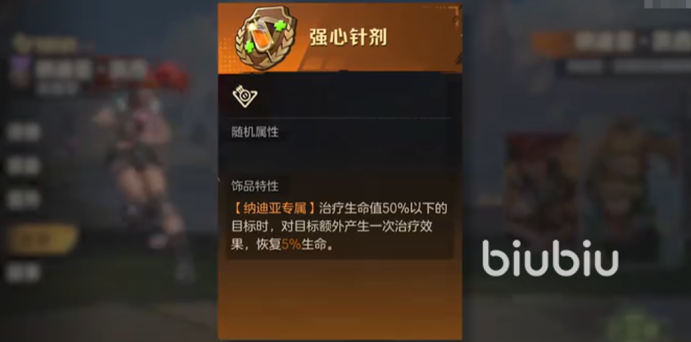3、饰品—强心针剂:可使其在治疗生命值50%以下的队友时,对目标额外产生一次恢复5%生命的效果。