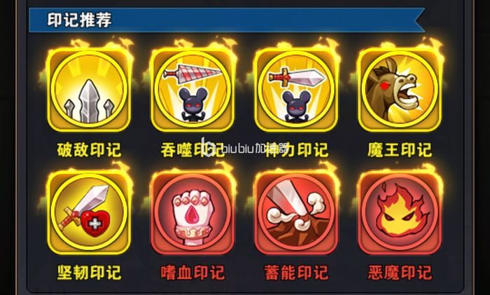 首先印记是可以搭配在玩家们的武器上使用的,不同的印记所提供的属性不同,比如说蓄能印记在释放技能的时候,每拥有一点额外能量,技能伤害就可以增加15%。再比如说噬血印记,技能直接伤害的18%就会转化为自己的生命,可以直接治疗自己,但是注意最好不要放到治疗性英雄啊,因为他们的伤害很低,没什么作用。再比如说破敌印记如果敌方目标带有增益效果的话,技能攻击就可以驱散干目标身上的所有增益效果。