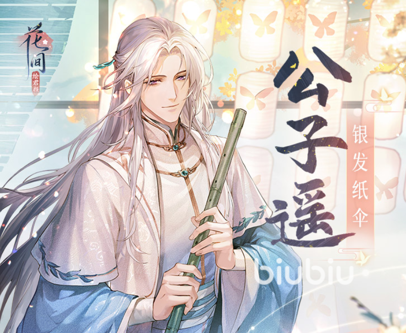 咱们来看看关于花间绘君颜游戏当中主要角色的CV有哪些?首先要给大家介绍的肯定是游戏当中清冷的代表,白色头发的公子遥,他的配音选择的是谷江山老师。
