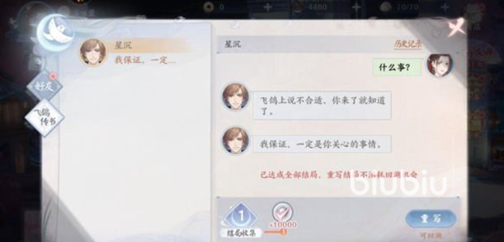 玩家可以通过飞鸽传书按钮,和自己的好友在游戏当中进行飞鸽传书。如果遇到困难,也可以利用飞鸽传书和好友一起在游戏当中商量接下来该如何操作。