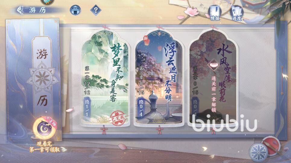 大家在初次进入游戏以后,可以去点击游历,里面为小伙伴准备了许多不同的故事,新人玩家需要做的就是去完成它们,不同章节下的故事也是有所区别的,玩家看完以后的奖励记得去领取。