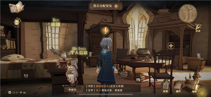 首先改名是需要在寝室中才可以进行的,玩家进入寝室,在自己床尾旁的桌子上放着一个个人照片,哪里写着个人信息,点击就可以进入【个人信息】界面了。