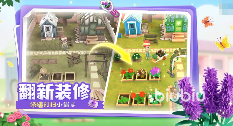 玩家需要规划花园布局,种植不同品种的花卉,每种花卉都有特定的生长周期。通过按时浇水施肥,花卉成熟后可以完成订单,获取资源,用于花园的升级改造。