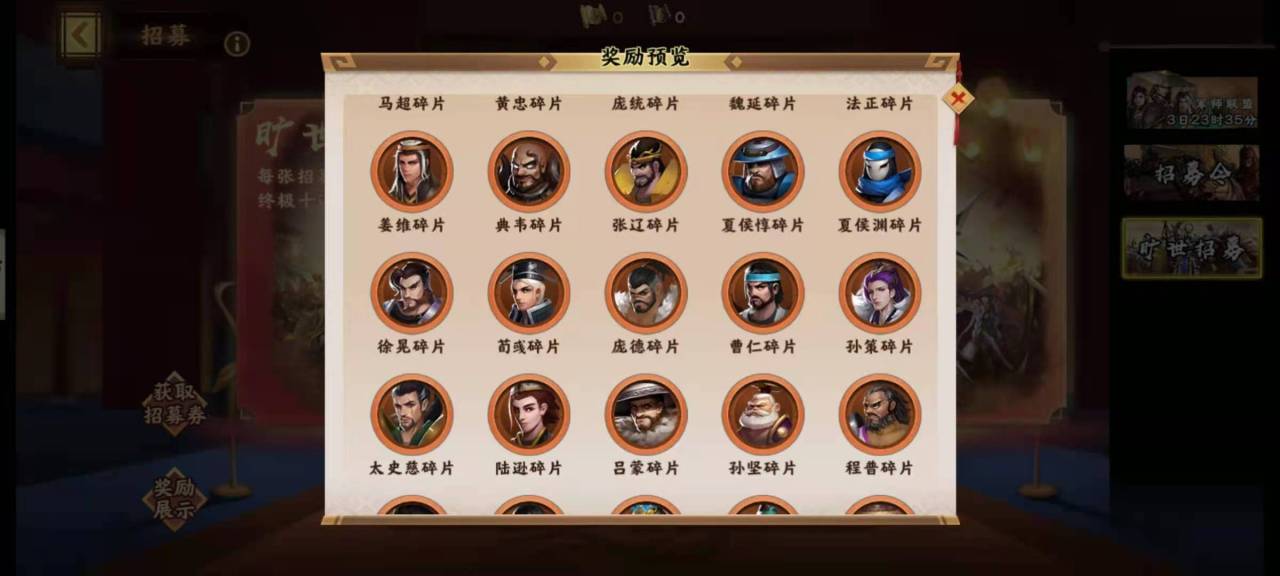 魂石兑换券可以通过充值返利等活动来获得,很多运营活动都可以奖励武将魂石,例如每日登入活动,就可以直接奖励魂石兑换券,每日累计充值也可以奖励魂石兑换券。还有一些运营活动直接奖励宝箱,宝箱中可以任意选择武将魂石,例如军师联盟活动赠送的军师任选包等。