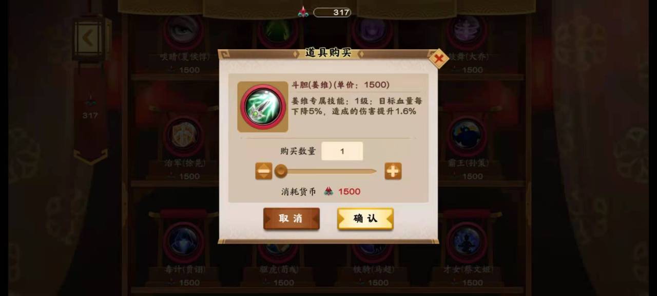 第二套方案侧重的是自身的生存和辅助,如果想走辅助方向的话,技能搭配可以换成高歌猛进,无懈可击和声东击西,高歌猛进增加全体法术伤害,无懈可击减少自身受到的伤害值,声东击西可以在降低伤害目标的怒气,这些对于姜维的范围伤害来说,也是很不错的选择。而且第二套技能获取起来也比较容易,第一套方案里的斗胆需要技能碎片去兑换,代价很高,一般玩家估计是弄不到的。