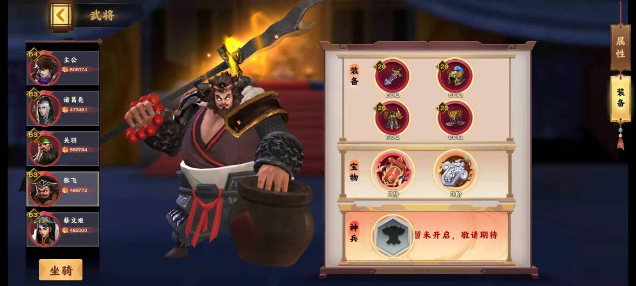 必须的培养就是一套红色的装备,强化等级要跟上角色的等级,再就是一定要把张飞升红,橙色的张飞和红色的张飞完全是两个概念,升红之后才真的是一块硬骨头了。