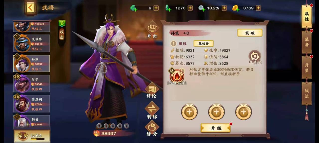 2021年06月01日 10:17 来源:番茄孙策是胡莱三国3中人气非常高的一名武将,也是吴国阵容里的绝对核心武将,小编今天来给大家讲讲胡莱三国3孙策技能搭配攻略。技能搭配是玩家在培养武将时候最主要的一项操作,为武将搭配上合理的技能,可以使得武将的战力得到充分的发挥,非常重要。
