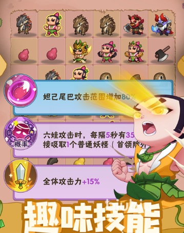 这个游戏的难度不大,就算小伙伴们不是老玩家也能够快速的掌握。游戏里小伙伴们需要想办法去获取葫芦娃,然后带领他们挑战不同的关卡,由于关卡也有难度区分,所以小伙伴们不用着急,慢慢培养就行,实力不够去打了也通过不了。