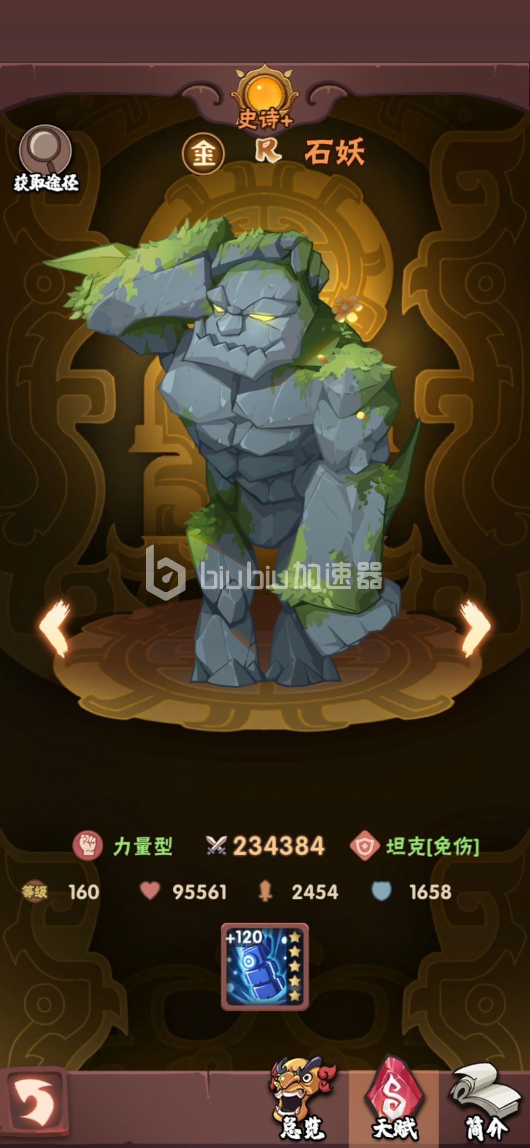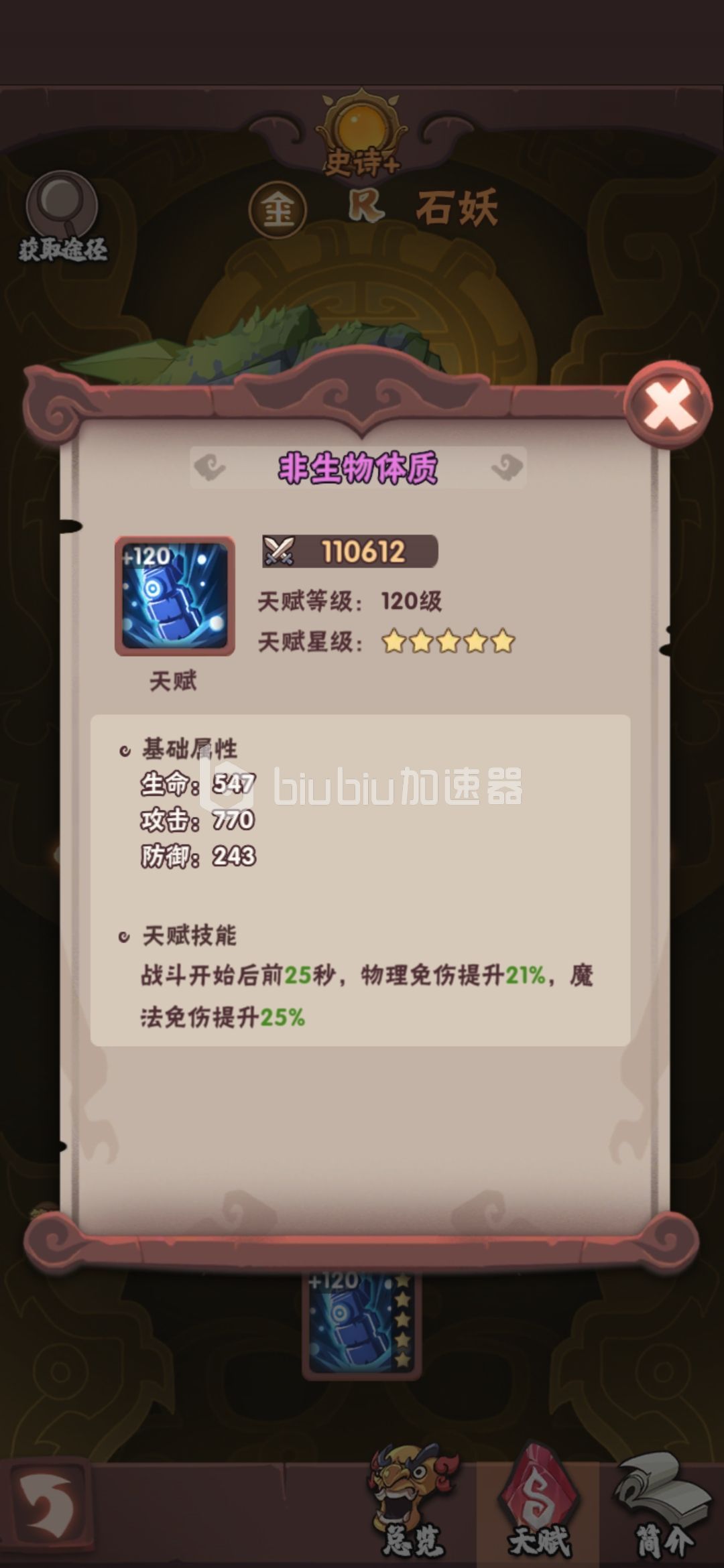 R级别仙灵:石妖,他的天赋只有:非生物体质,开场后的前25S,物理和魔法免疫提高。